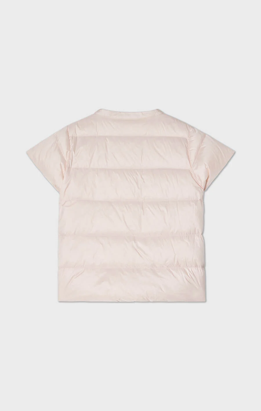 Indie kortärmad dunväst är en ultralätt dunväst med kort t-shirt ärm. Den har en rund halsringning, dolda fickor och guldknappar som stängs med magnet. Denna lätta dunväst är perfekt att bära både inomhus och utomhus.