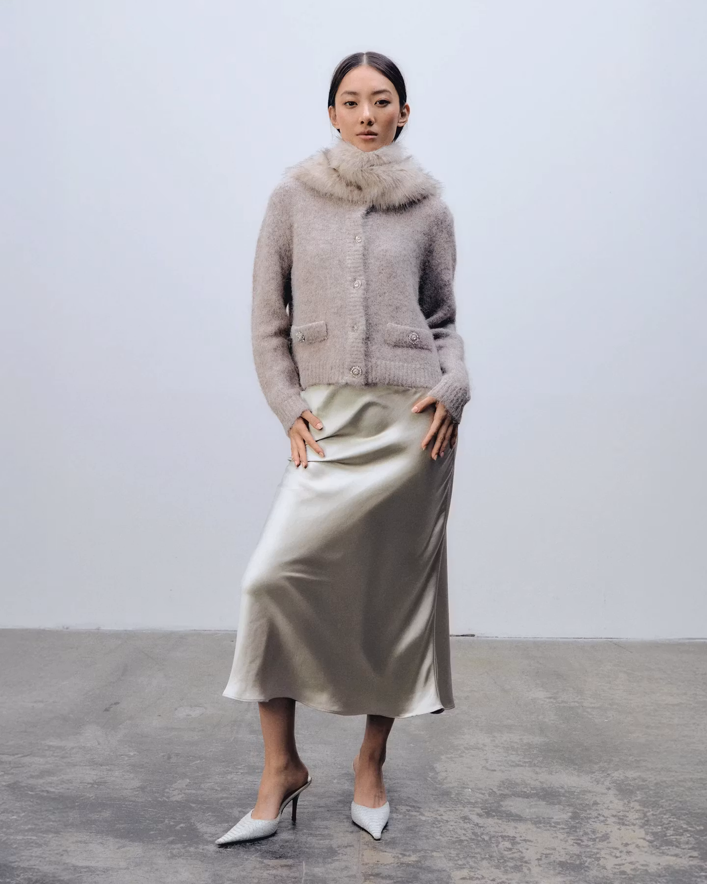 Lucky is an oversized fur collar that adds soft glamour and texture to any silhouette. It's timeless designed and made to last. Perfect layering over wool coats or a knitted top or why not with matching Tabitha jacket. Be playful and have fun with it!